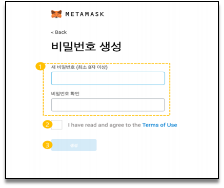 처음사용자로 지갑생성하기 선택 / 동의하기