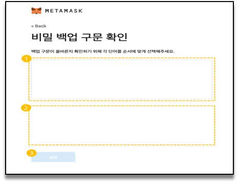 비밀 백업 구문 : 이걸 모르시면 어떤 방법으로도 지갑을 복구할 수 없습니다. 꼭 기록하여 보관하세요. 단어의 순서 중요합니다.